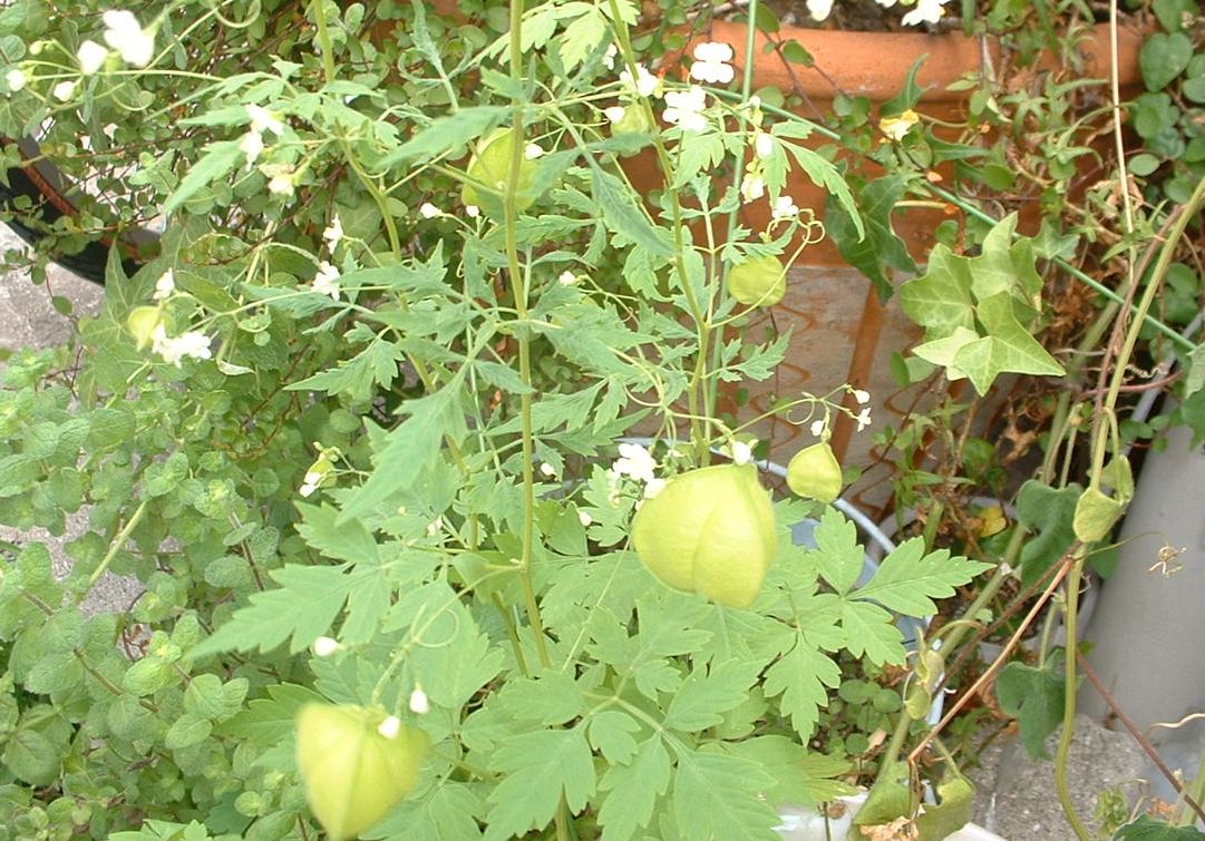 るのに、こぼれた種から発芽した株が今頃になって花を咲かせてい