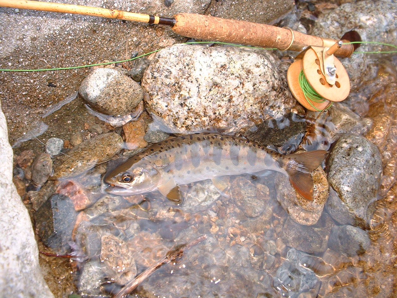 ちなみにロッドとリールは竹製 ラインはリンシードオイルで仕上げた自作ラインです。